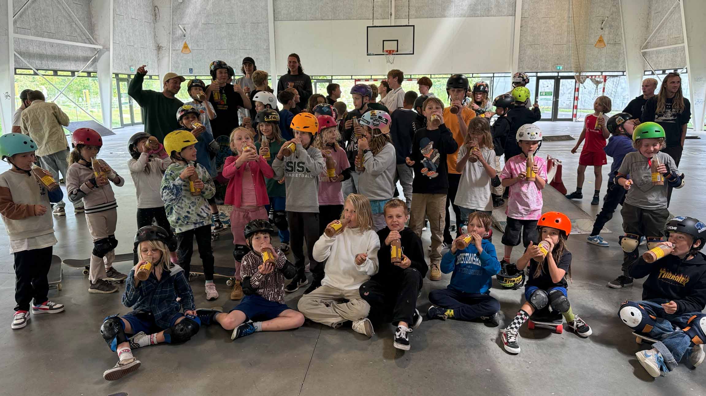 Vores camps er fra 7-16 årige. Er dit barn under 7 år kan vi desværre ikke tilbyde at være med til denne skatecamp.